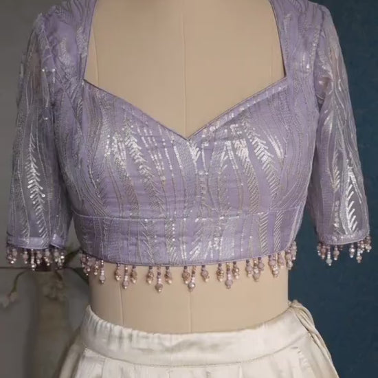 Lavender Embroidered Organza Sweetheart Neck Blouse DVBL_437
