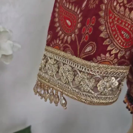 Please note the fringes in the blouse are handmade hence fragile. Please handle with care.