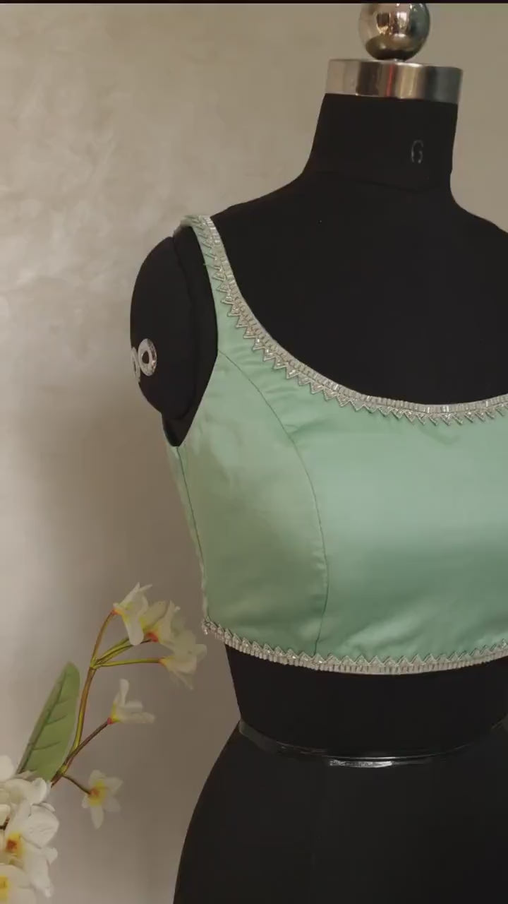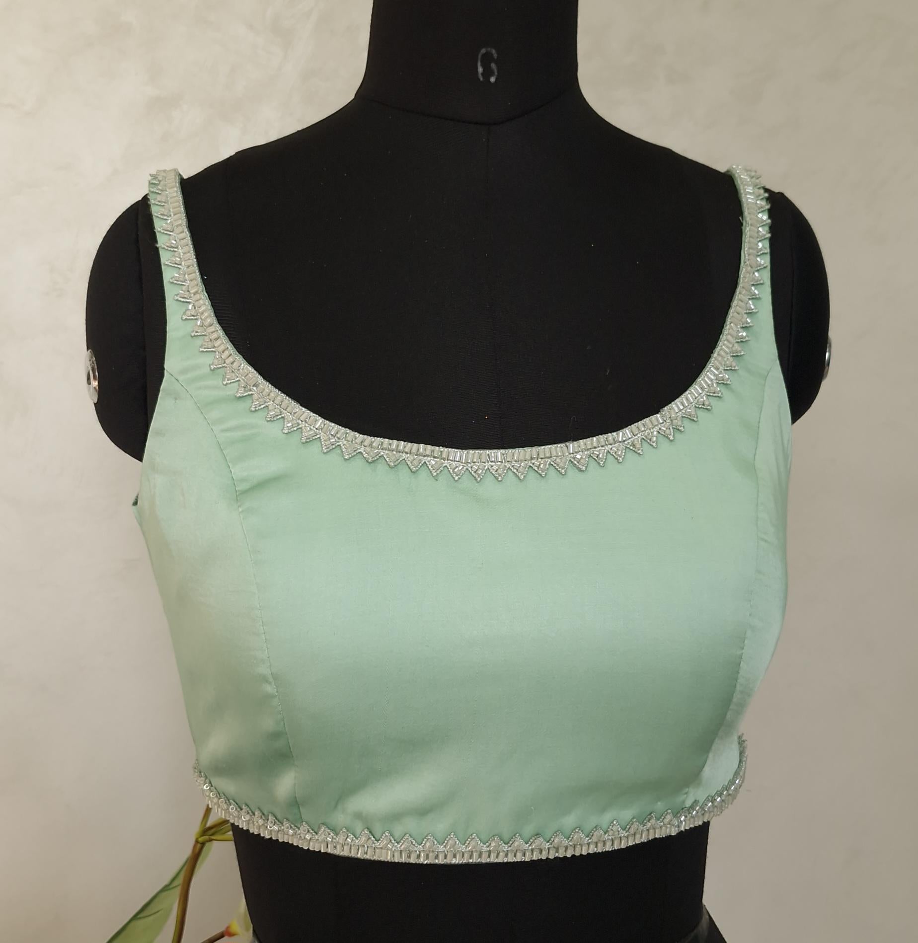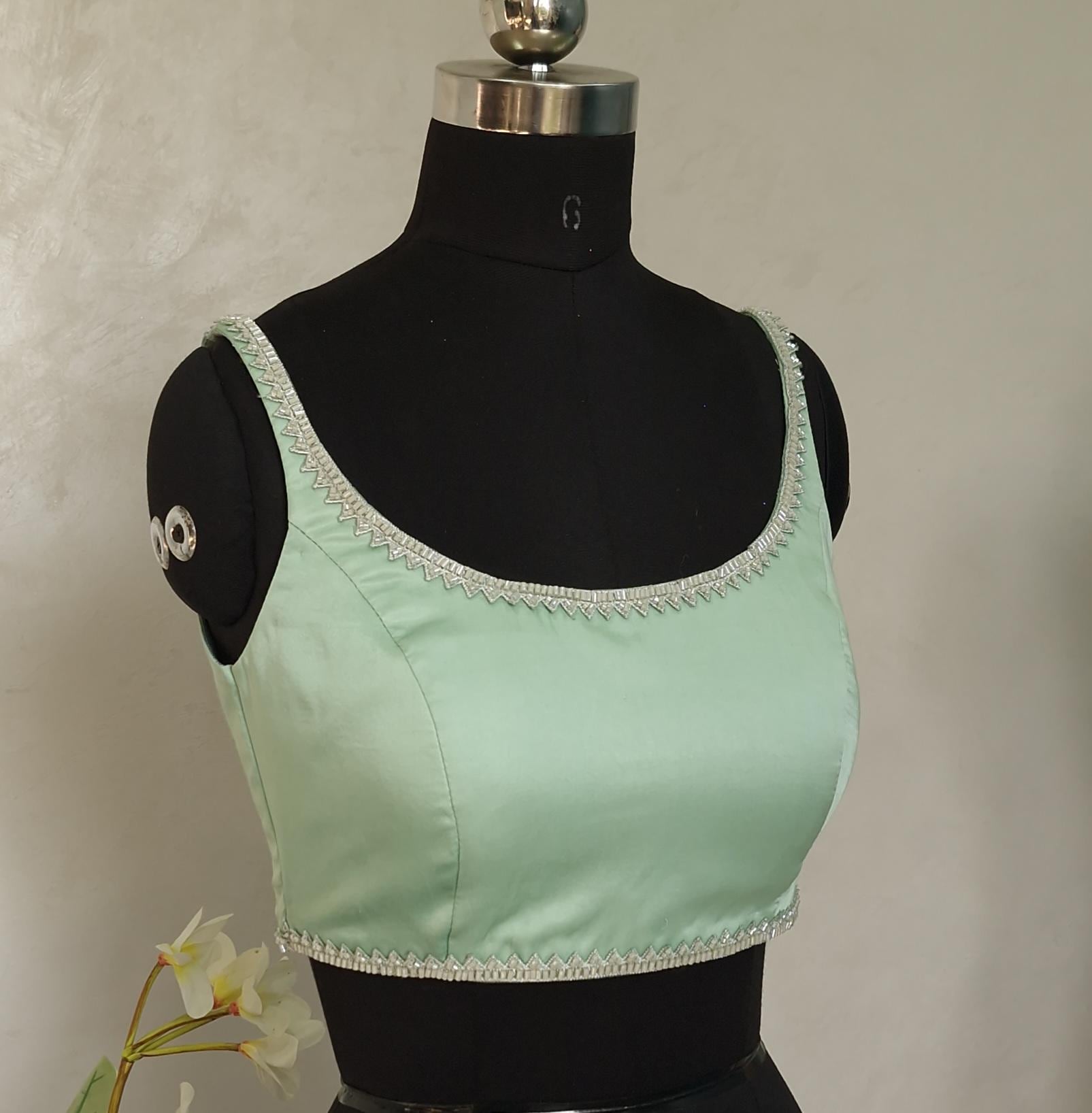Mint Green Modal Satin Sleeveless Blouse DVBL_406