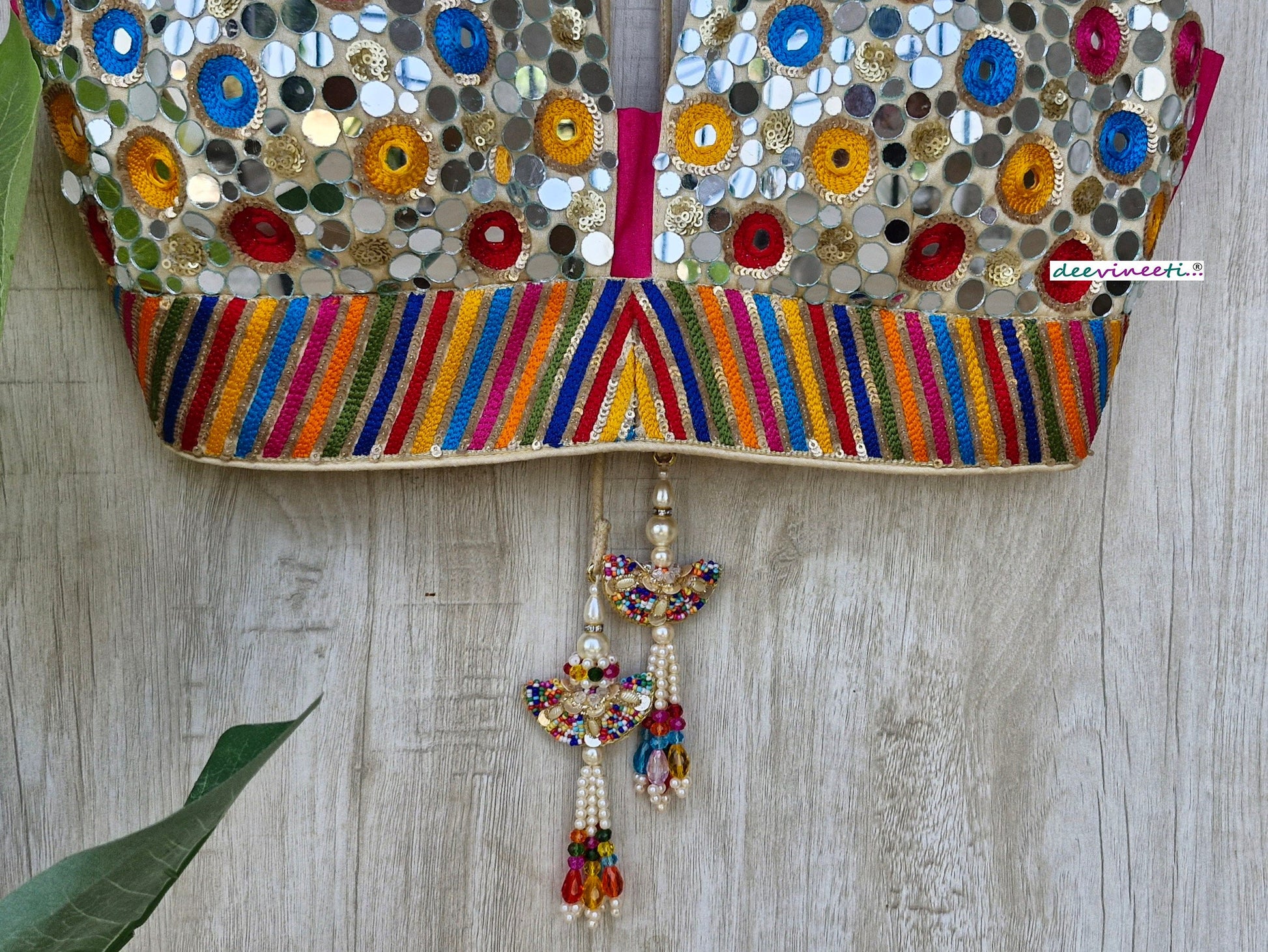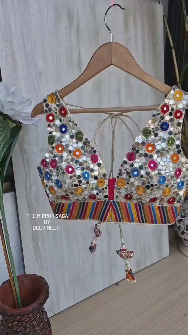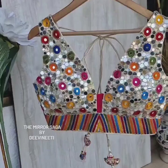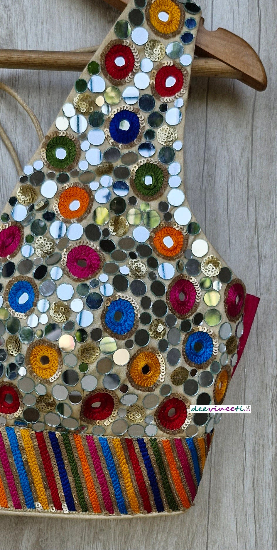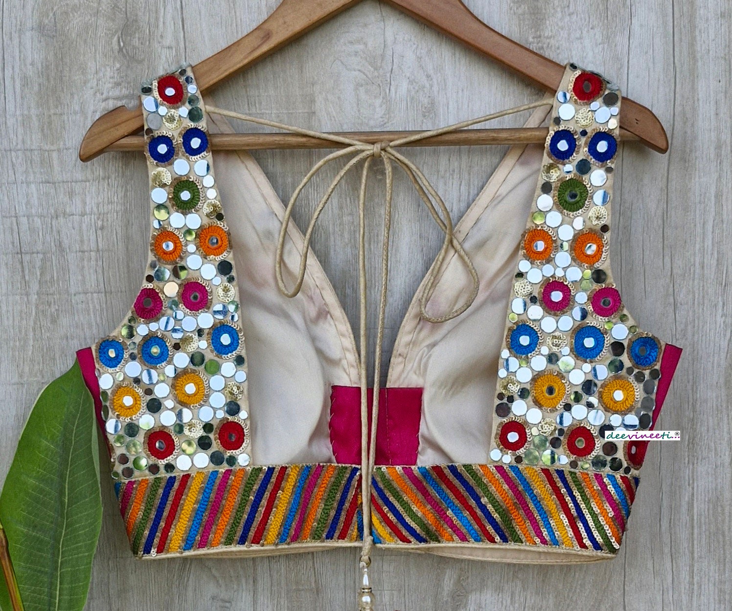 Multicolor Real Mirror Hand Embroidered Plunge Neckline Blouse DVBL_357