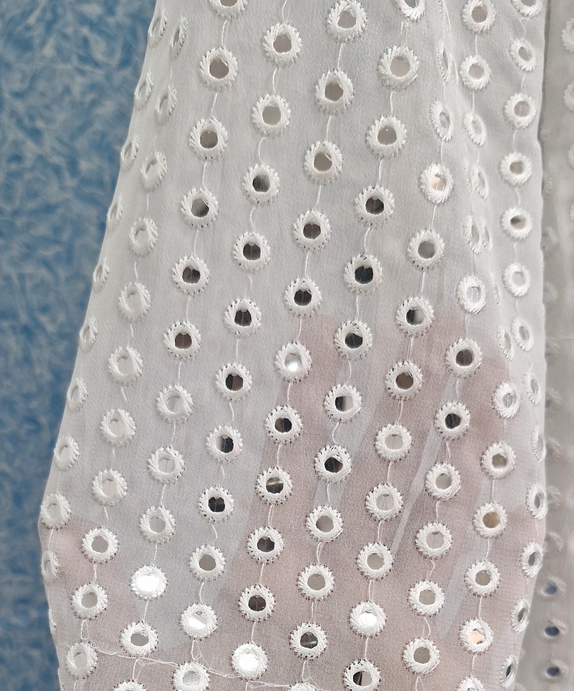 Ivory Faux Mirror Embroidered Georgette Peplum Top DVBL_419