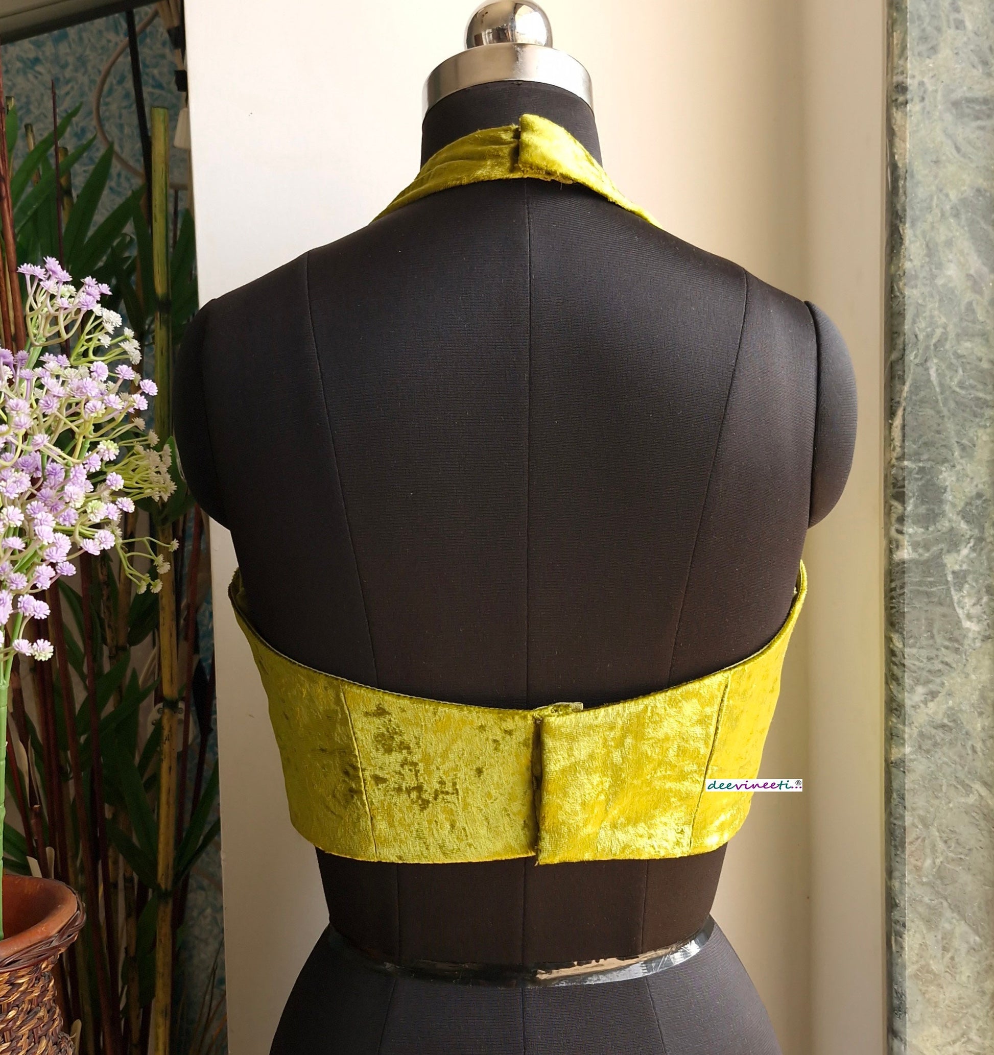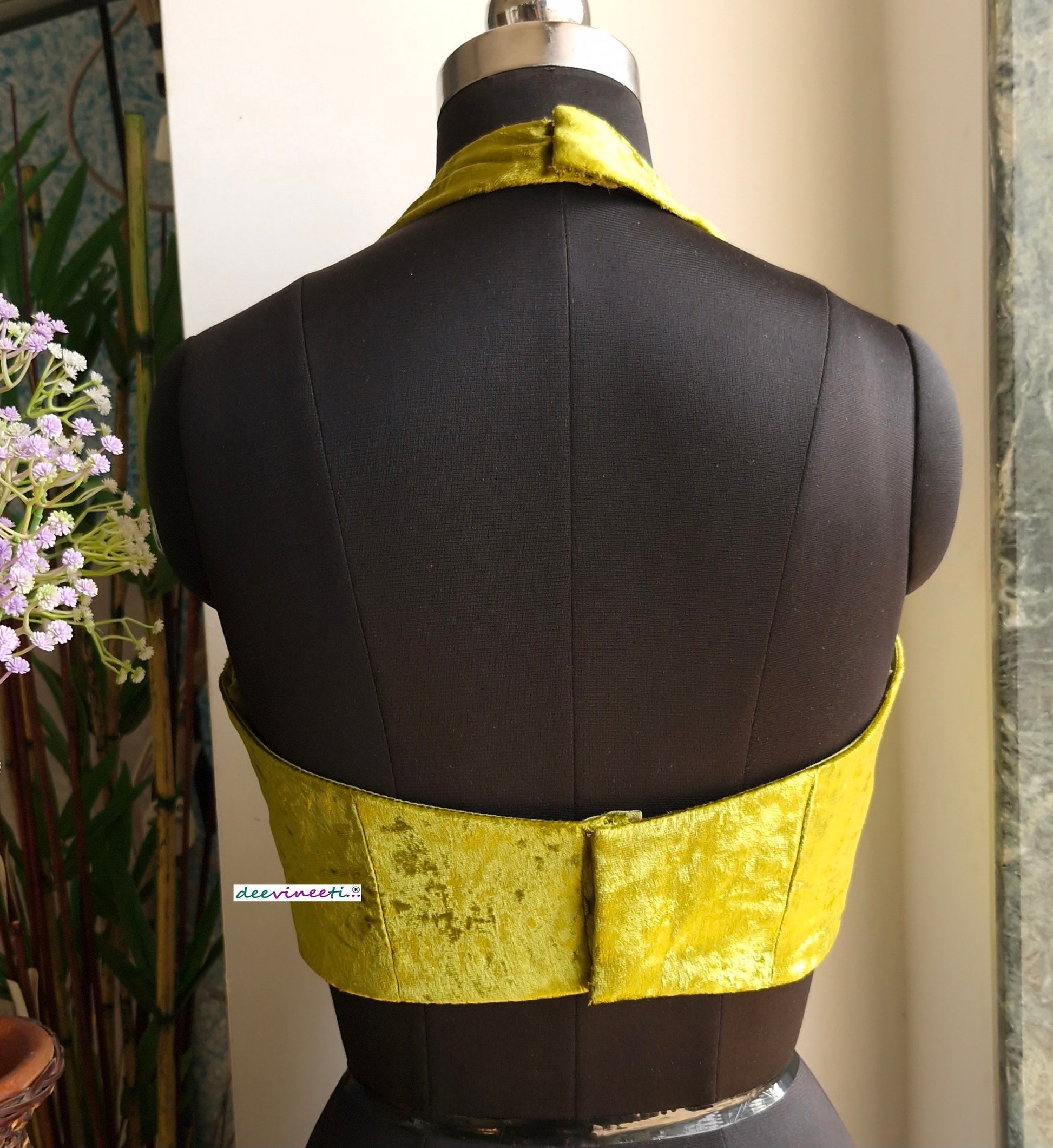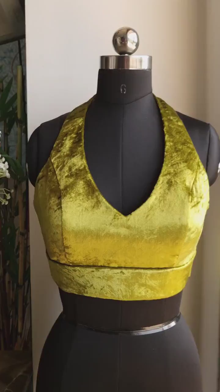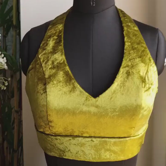 Olive Green Viscose Velvet Halter Neck Blouse DVBL_333