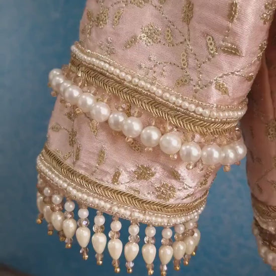 Please note the fringes in the blouse are handmade hence fragile. Please handle with care.