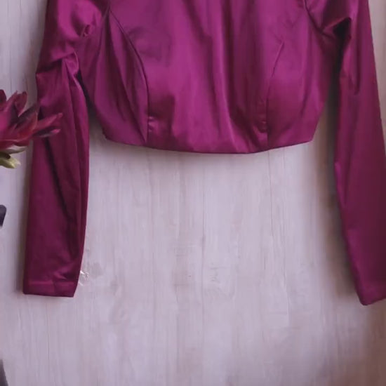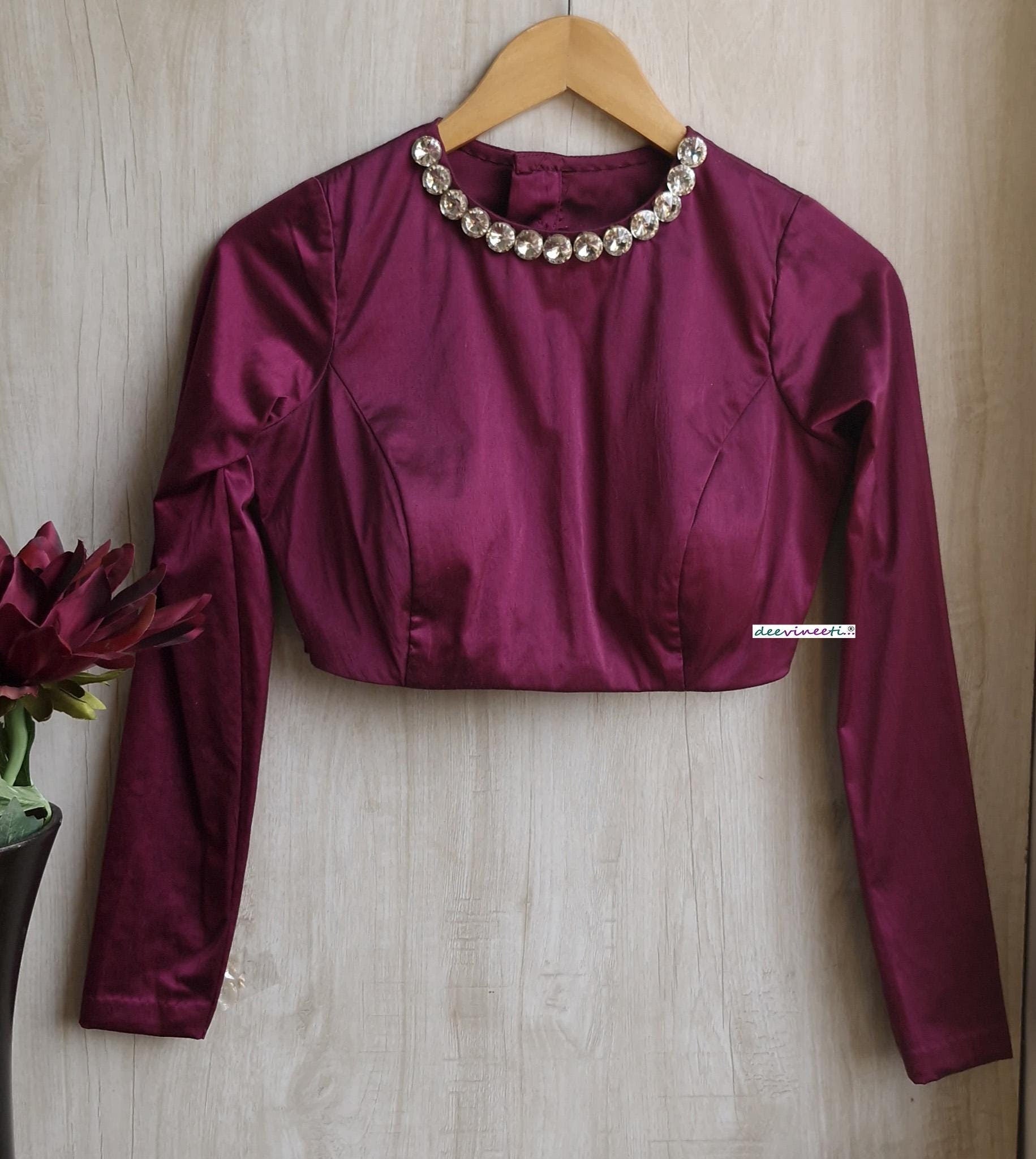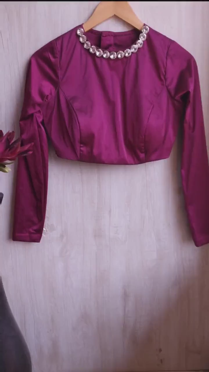 Purple Wine Lycra Satin Jewel Neck Blouse DVBL_391