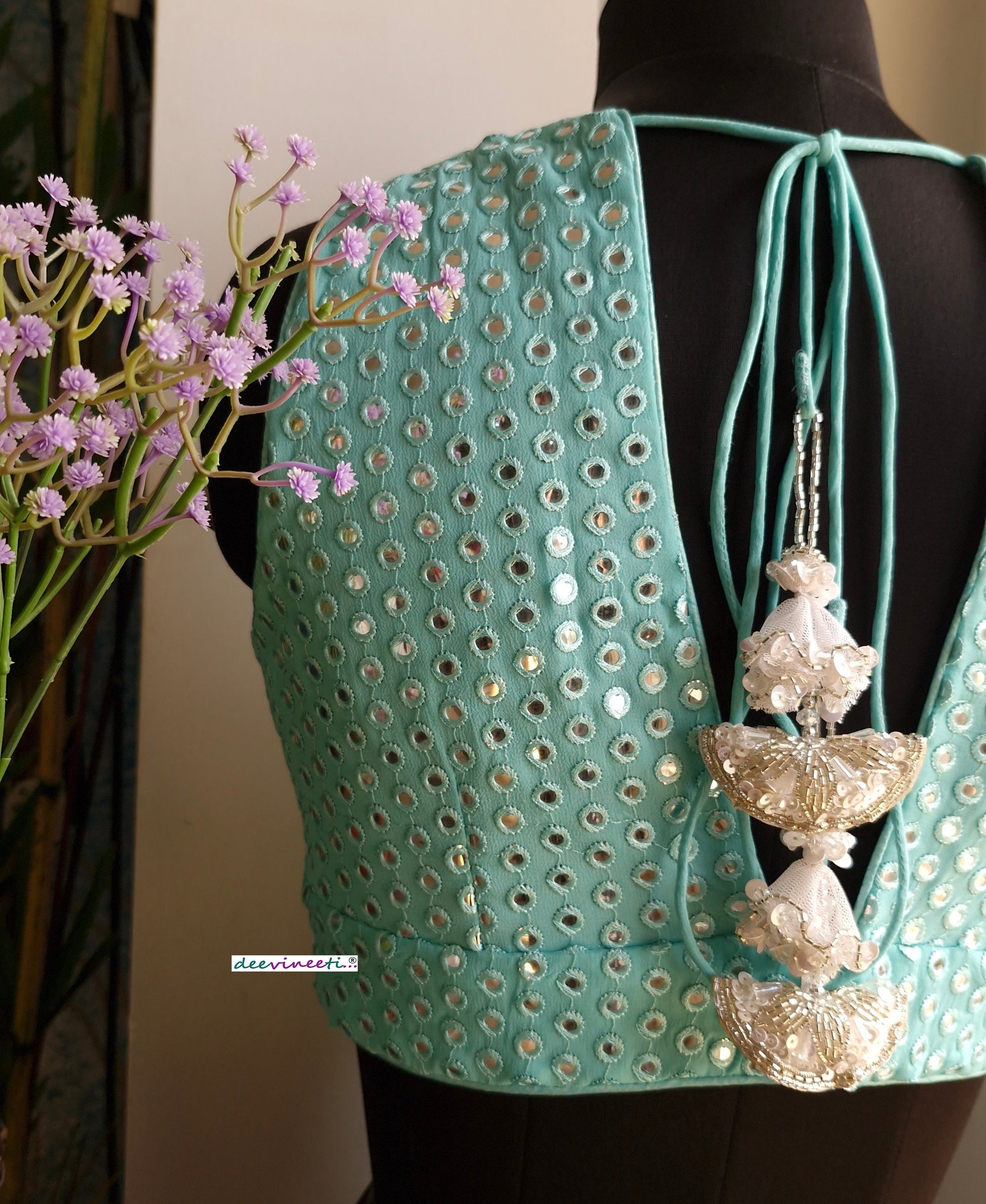 Please note the fringes in the blouse are handmade hence fragile. Please handle with care.