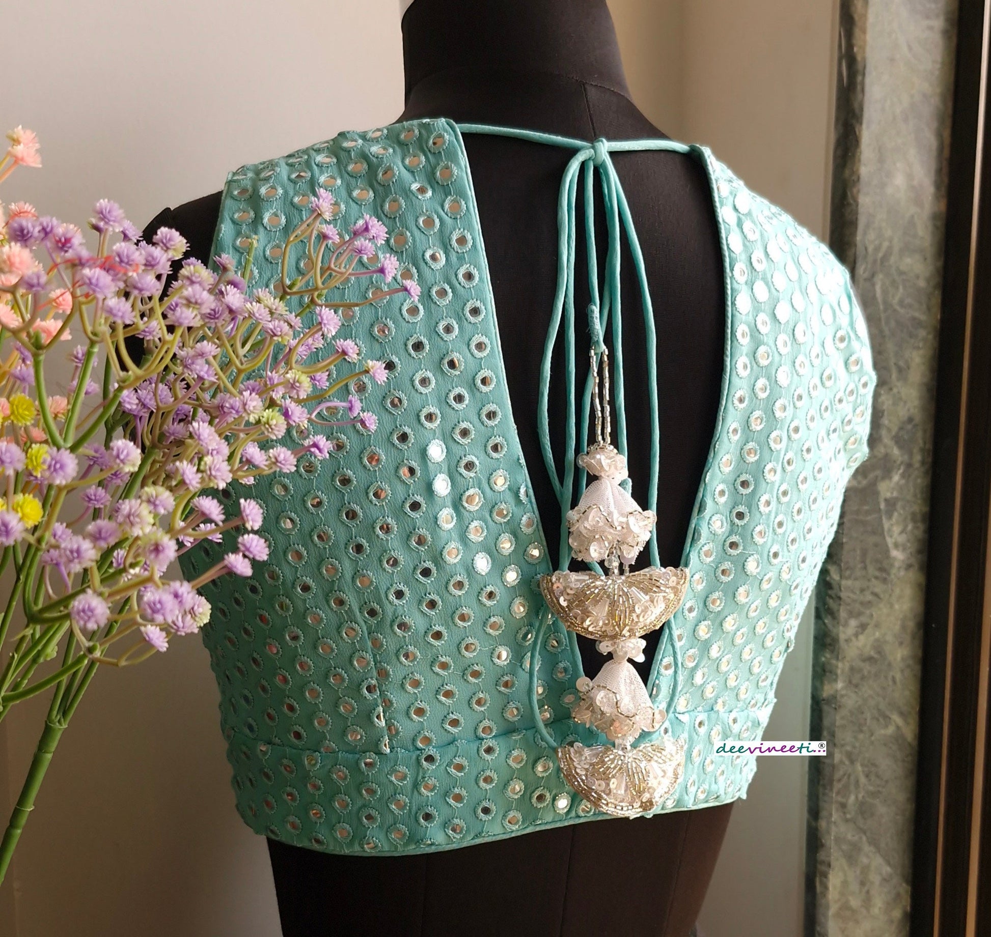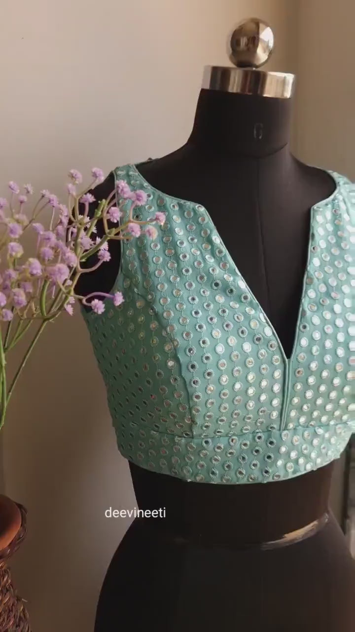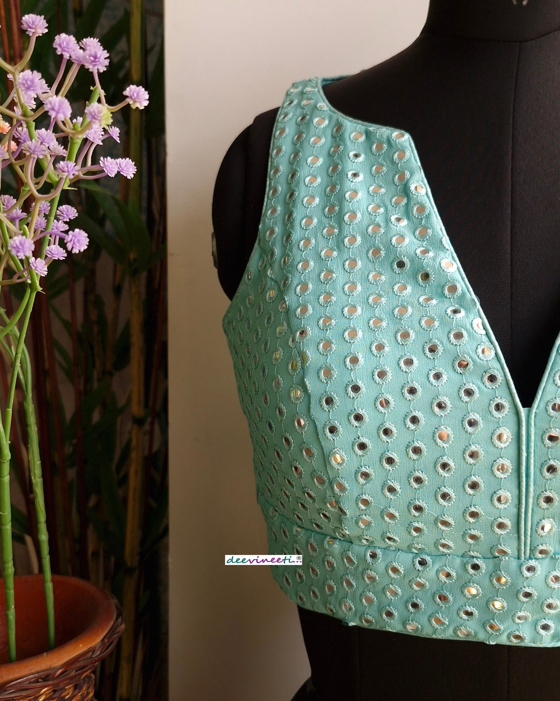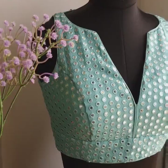 Sea Green Faux Mirror V Neck Blouse DVBL_338