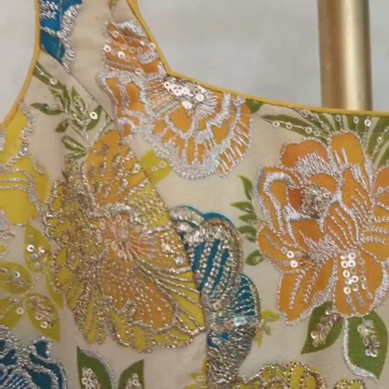 Please note the fringes in the blouse are handmade hence fragile. Please handle with care.