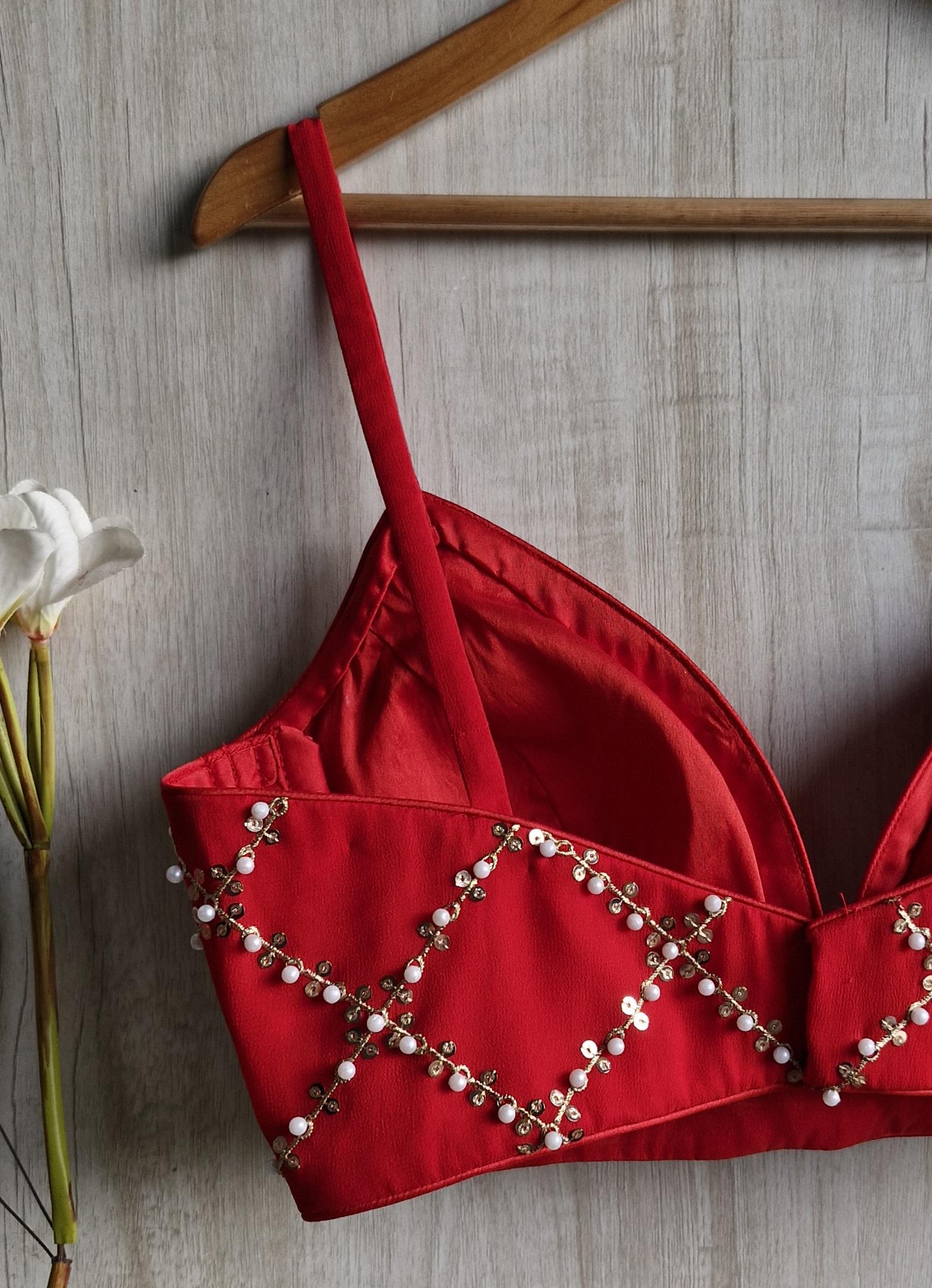 Beads and Sequins Embroidered Red Spaghetti Blouse DVBL_438