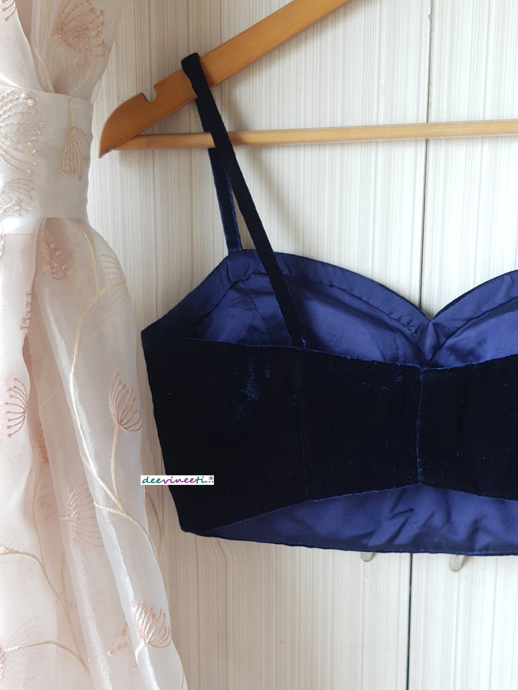 Deep Blue Velvet Deep Sweetheart Neck Spaghetti Blouse DVBL_263
