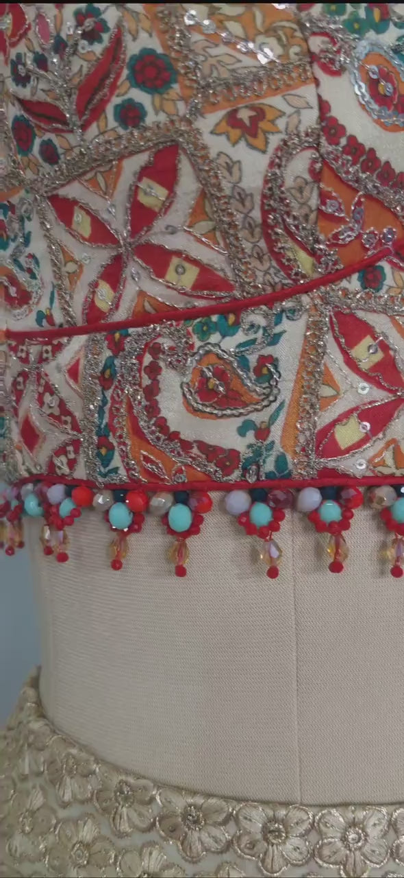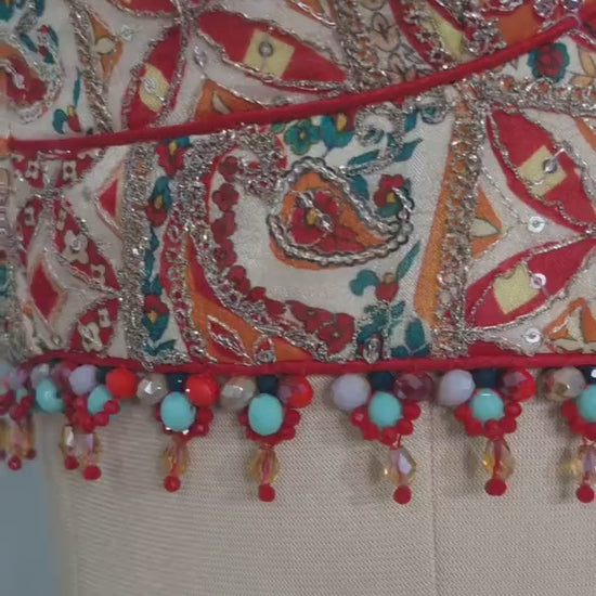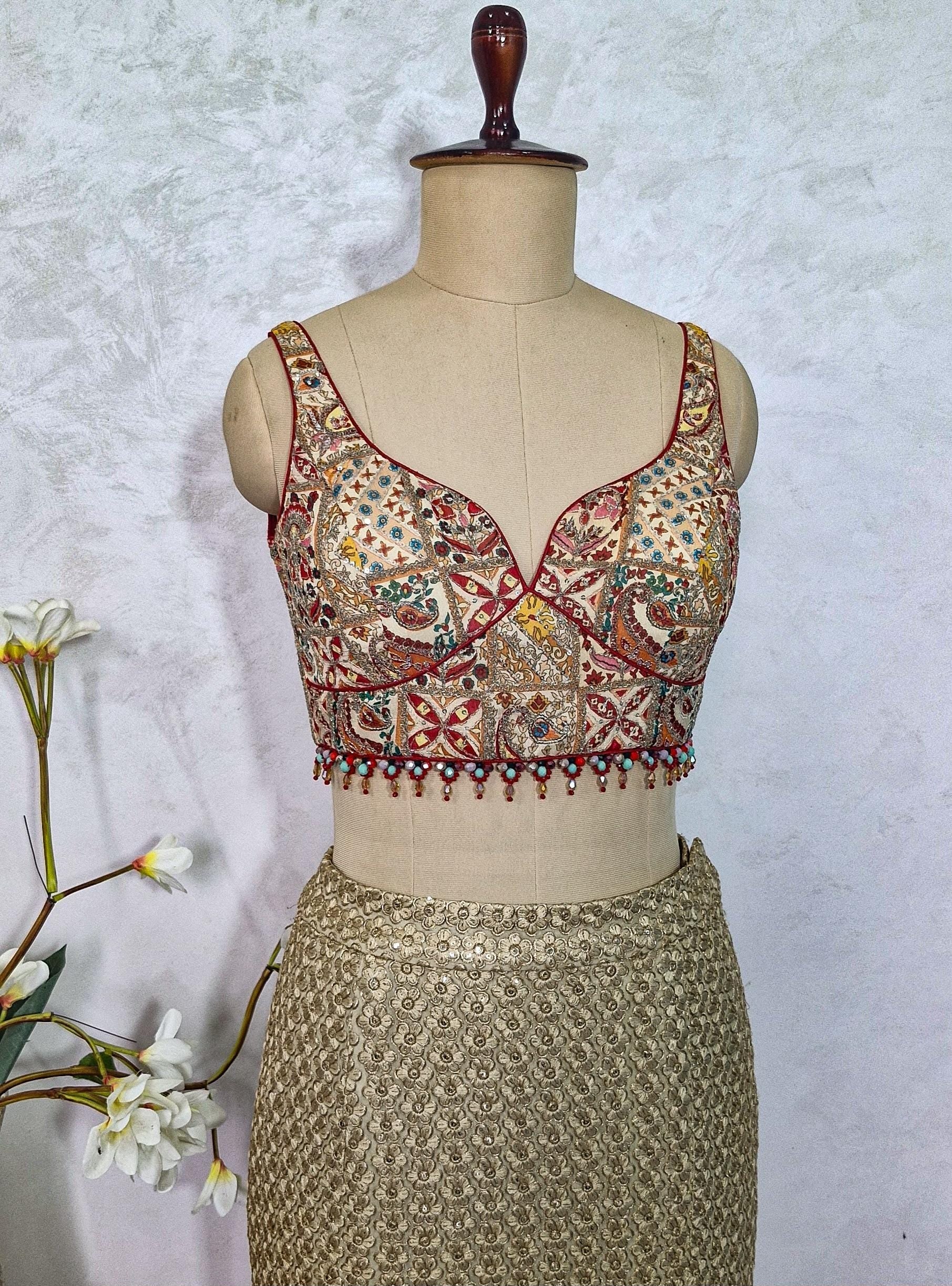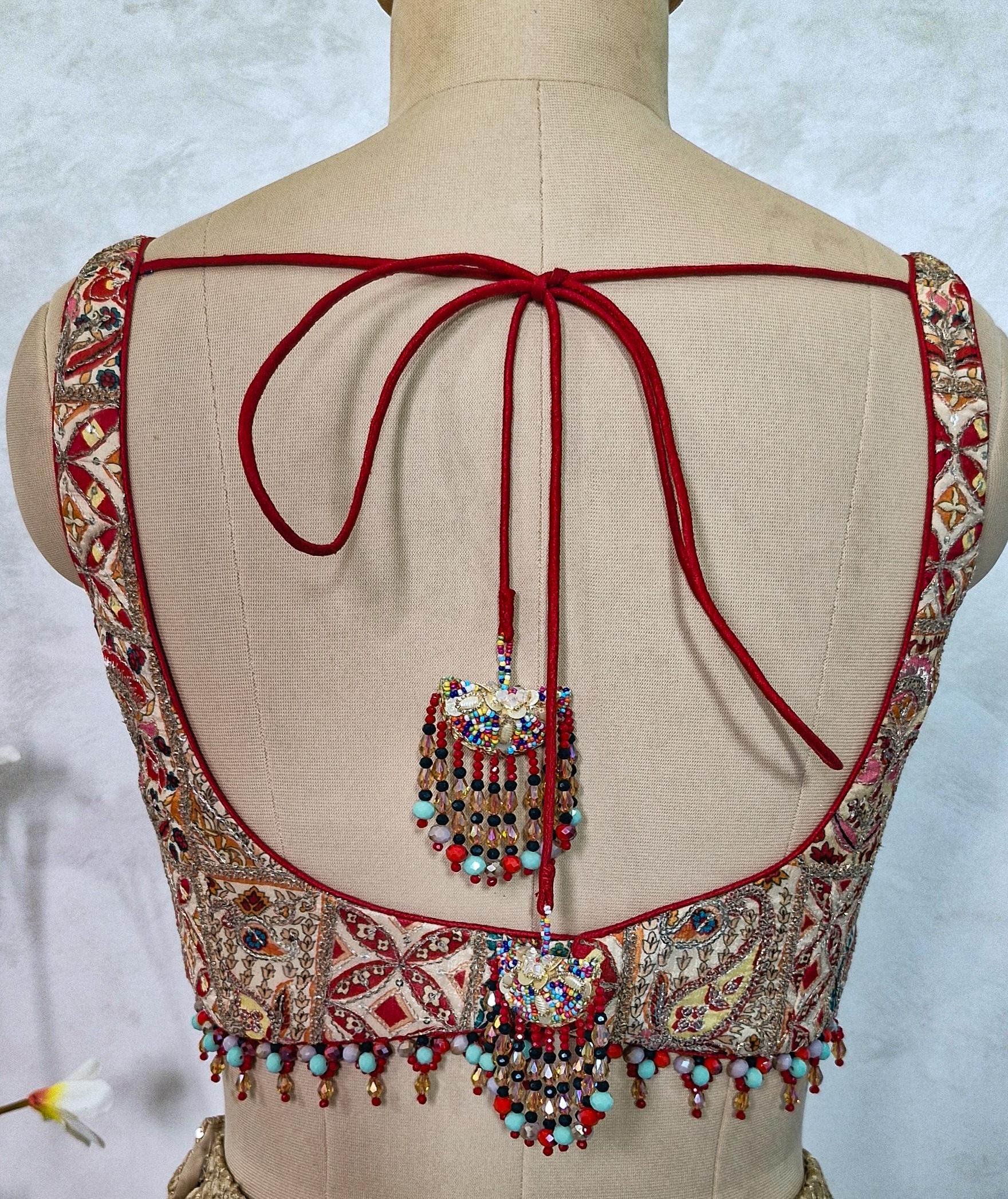 Please note the fringes in the blouse are handmade hence fragile. Please handle with care.