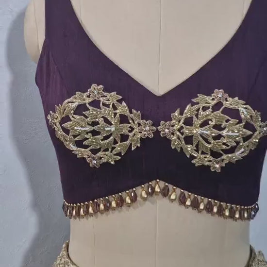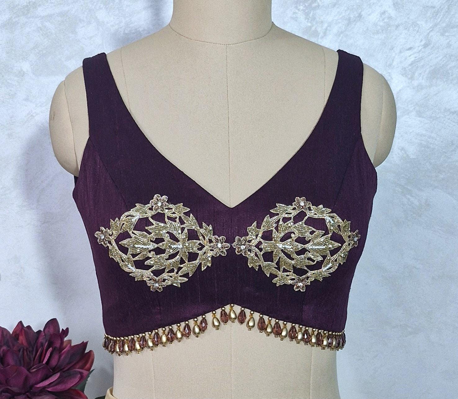 Hand Embroidered Burgundy Wine Raw Silk Blouse DVBL_432