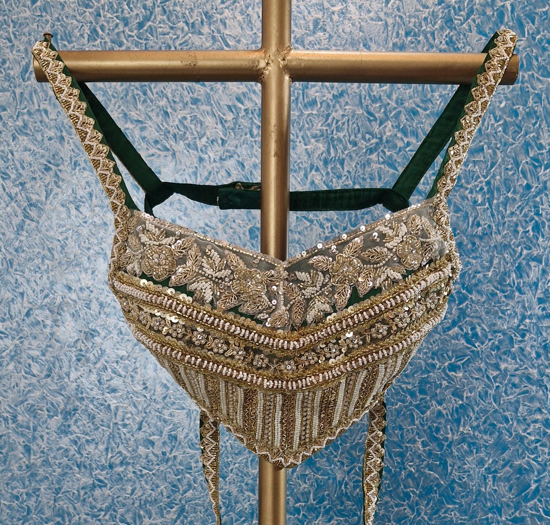 Hand Embroidered Green Raw Silk Backless Blouse DVBL_433