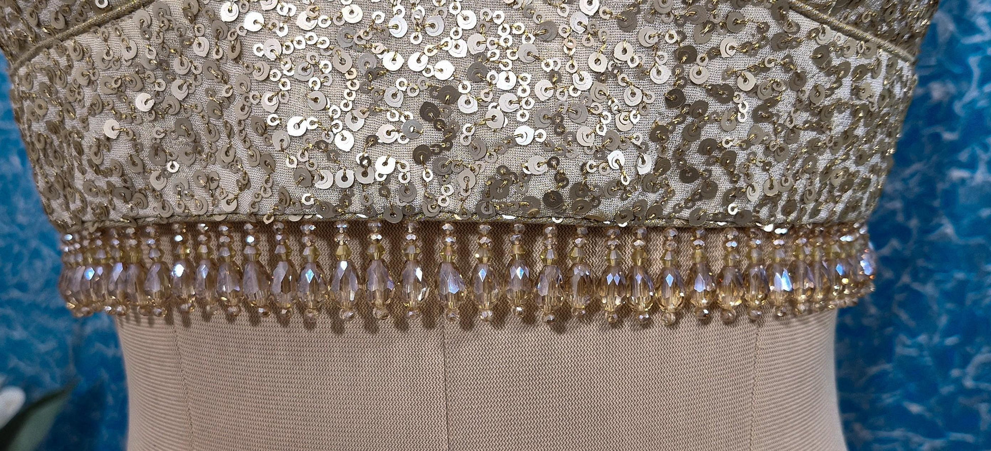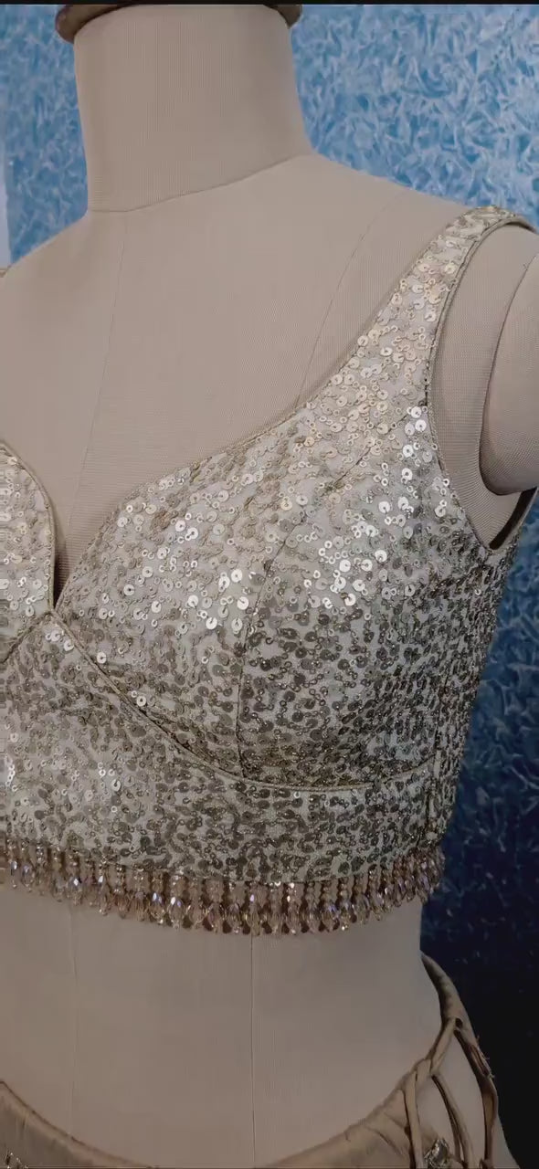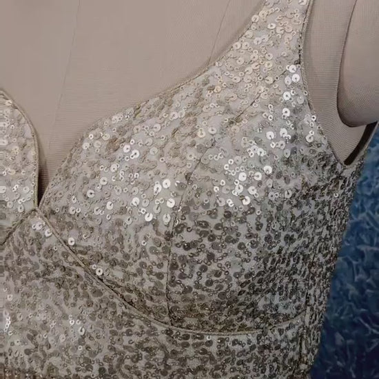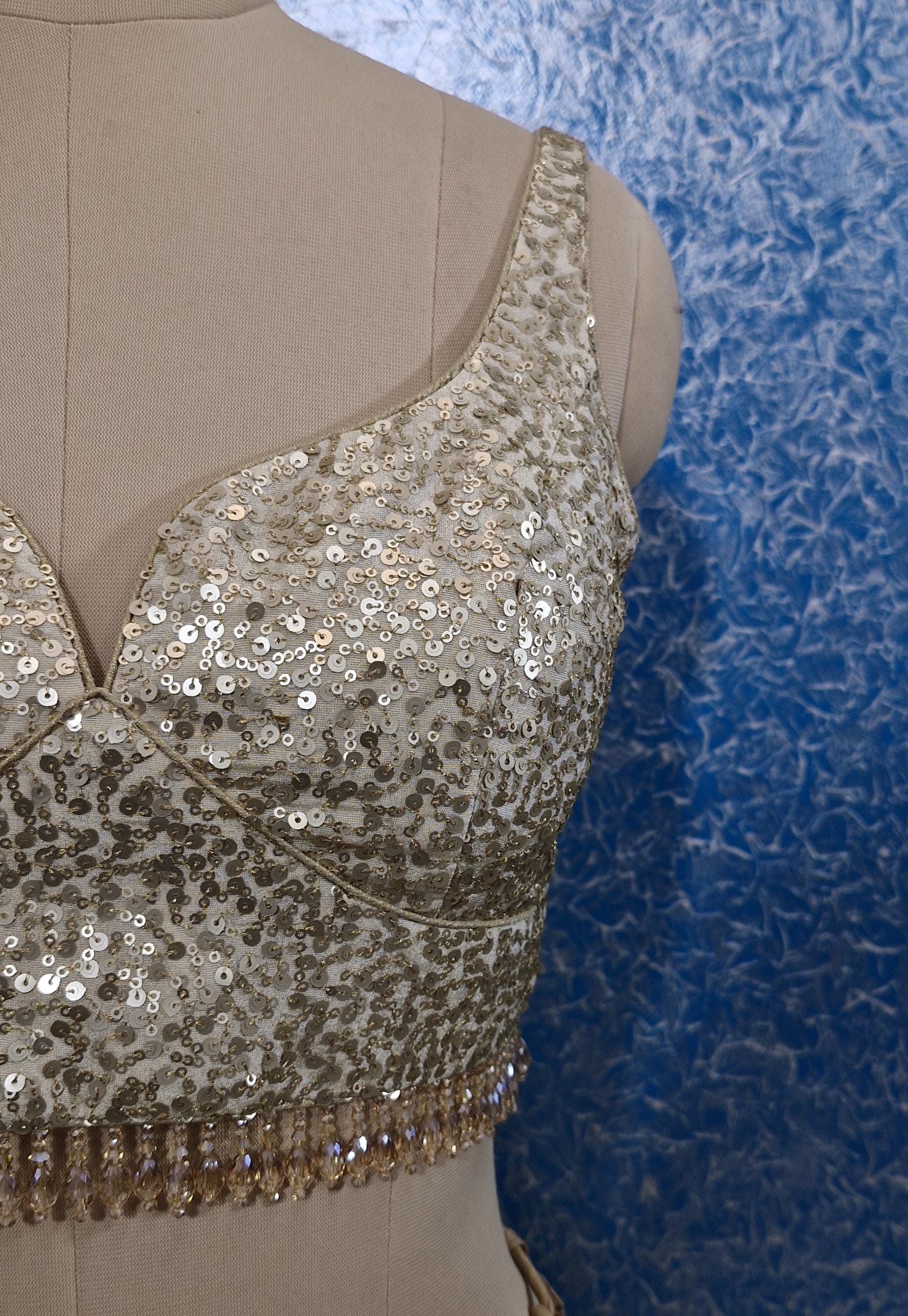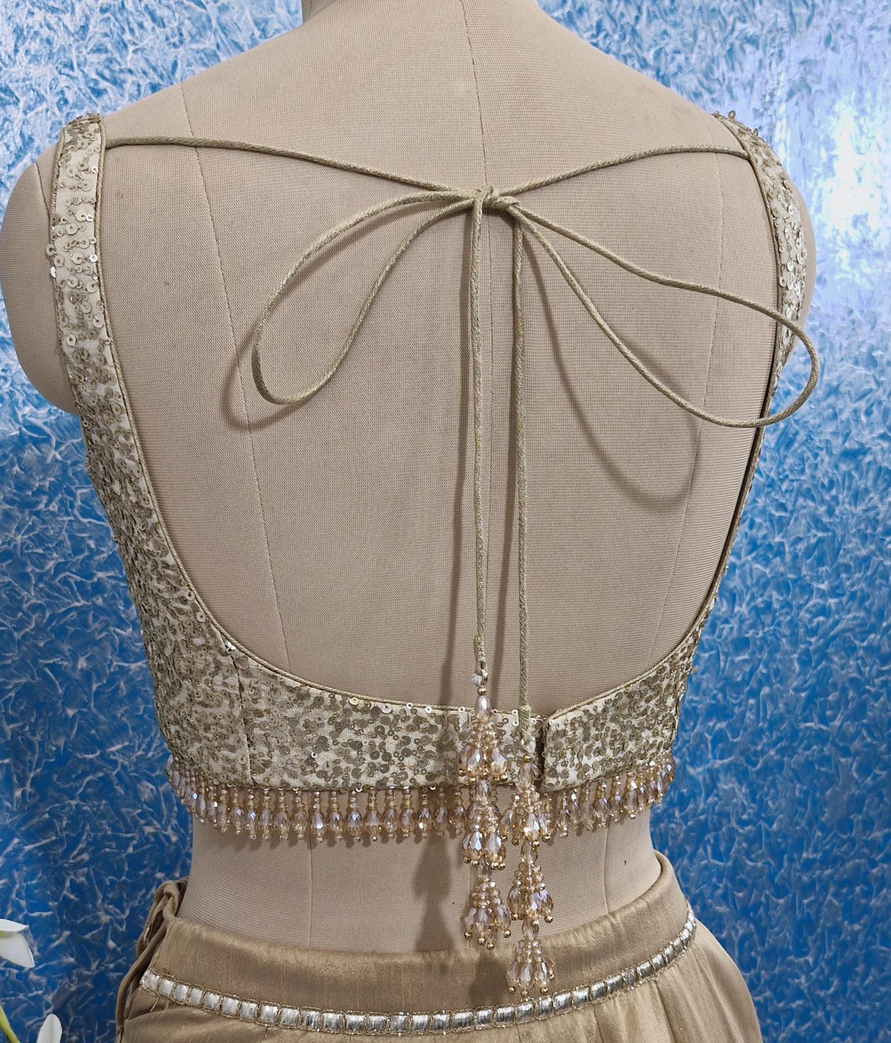 Light Gold Sequins Tissue Silk Sweetheart Neck Blouse DVBL_435