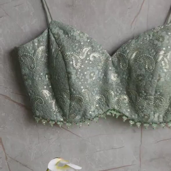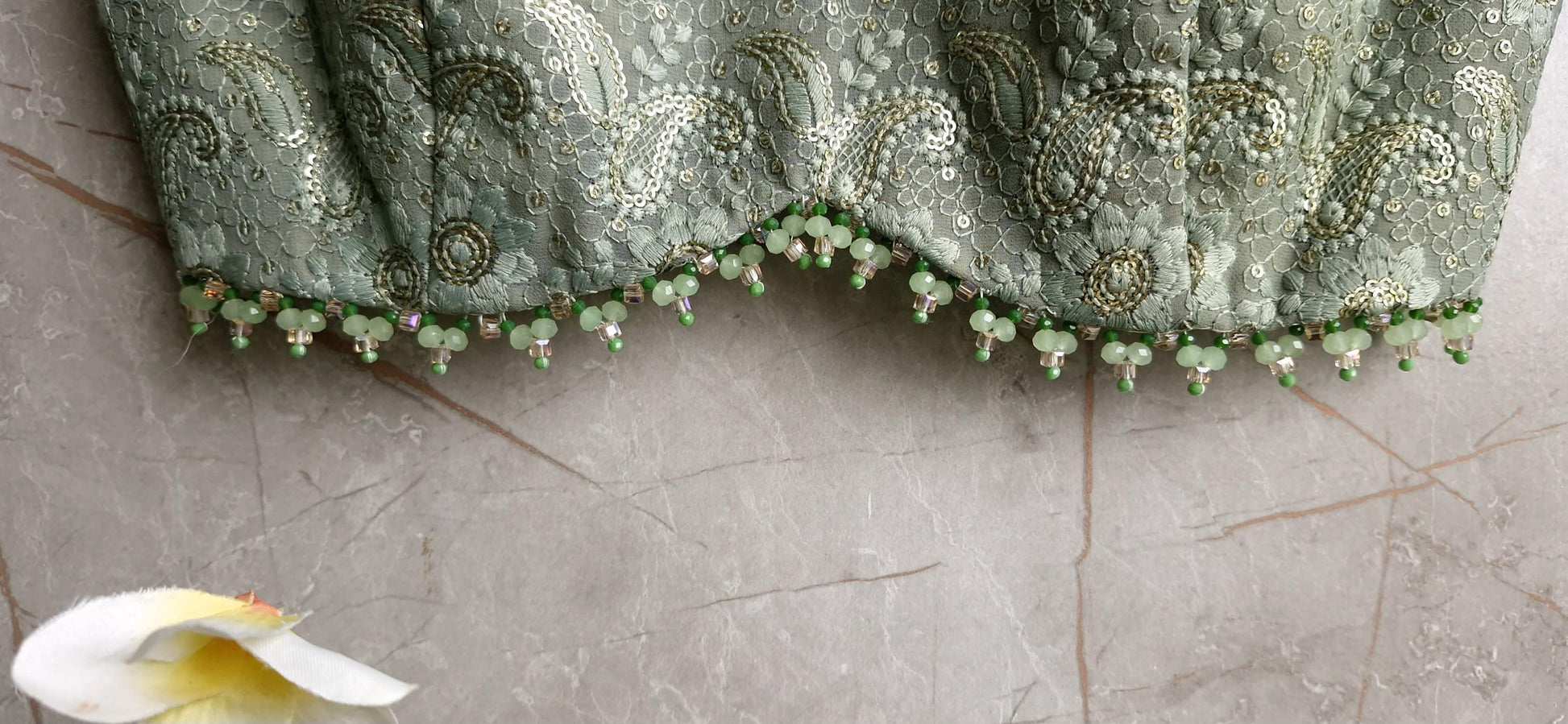 Please note the fringes in the blouse are handmade hence fragile. Please handle with care.