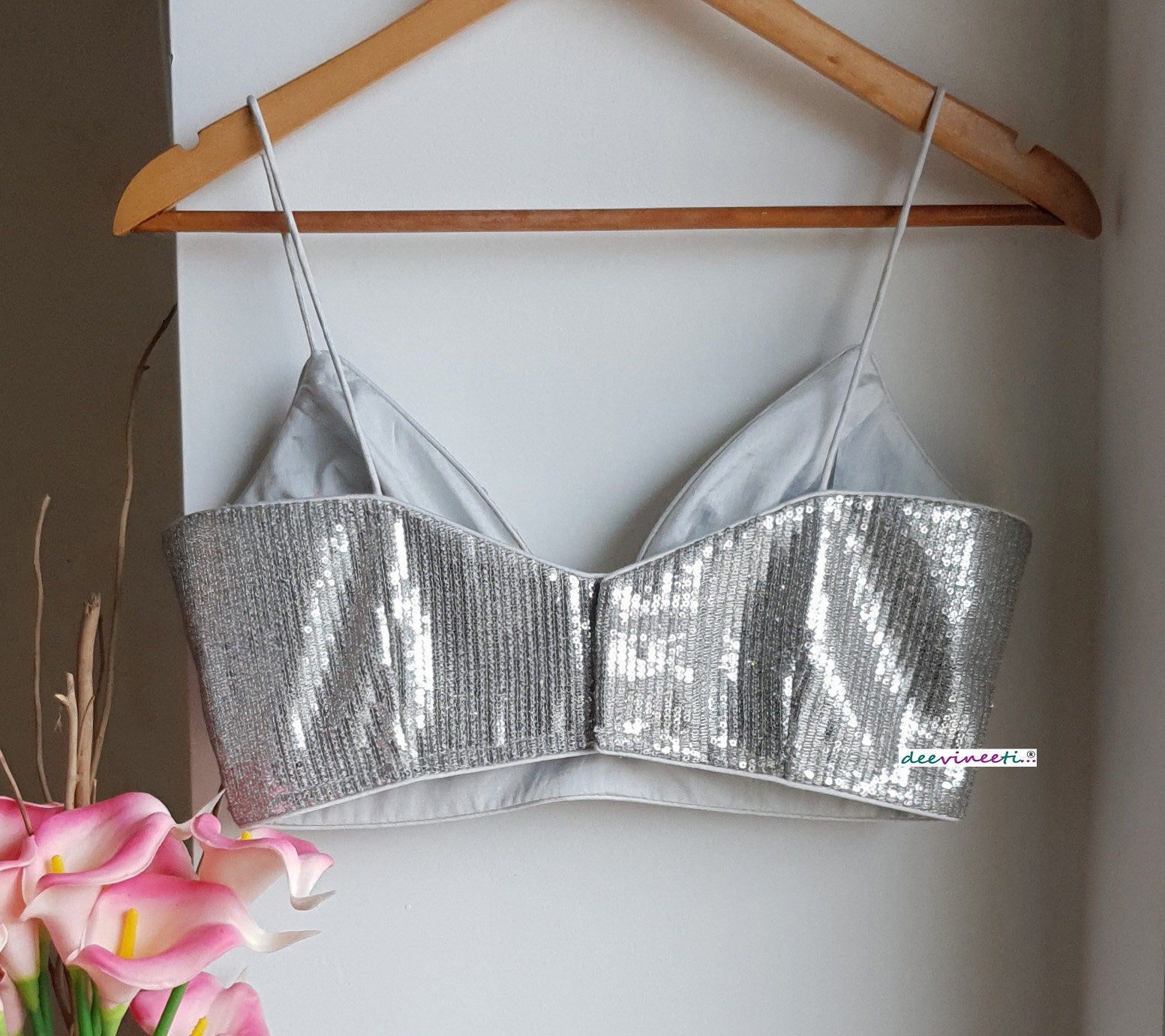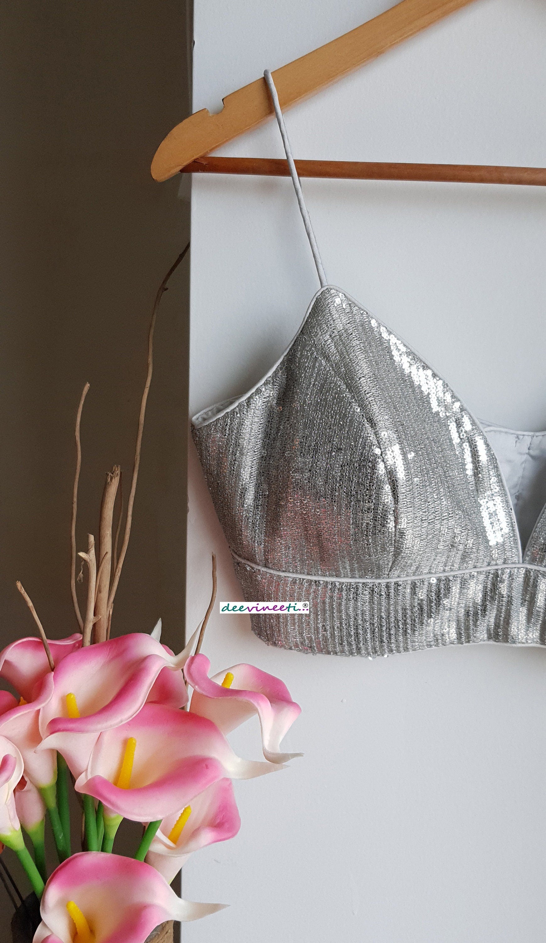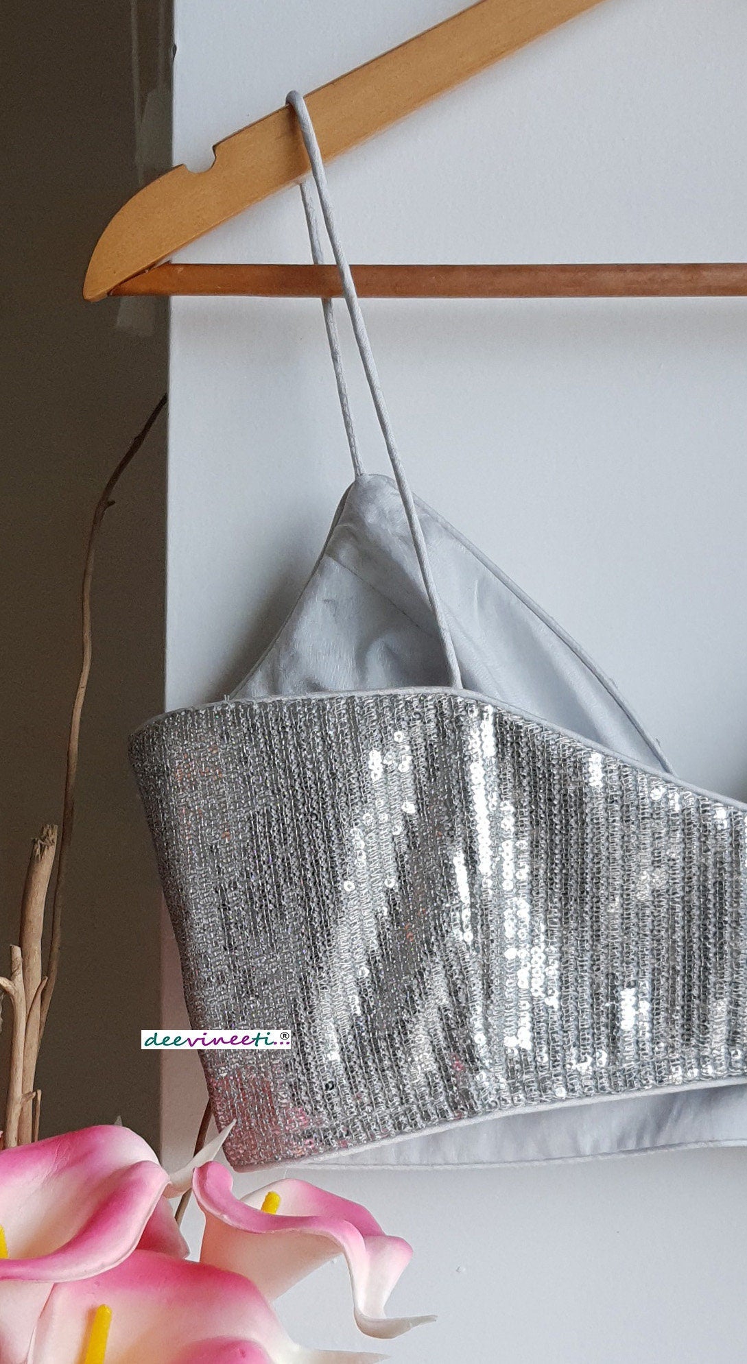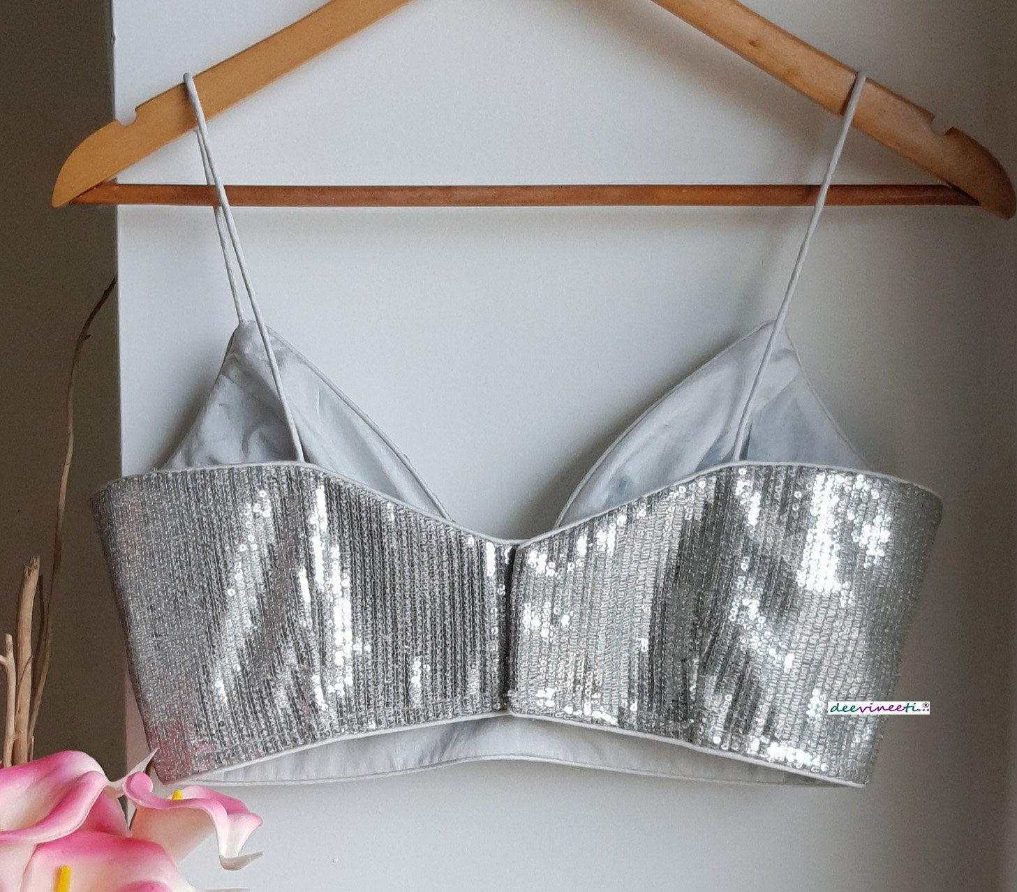 Silver Sequins Embroidered Spaghetti Blouse DVBL_267