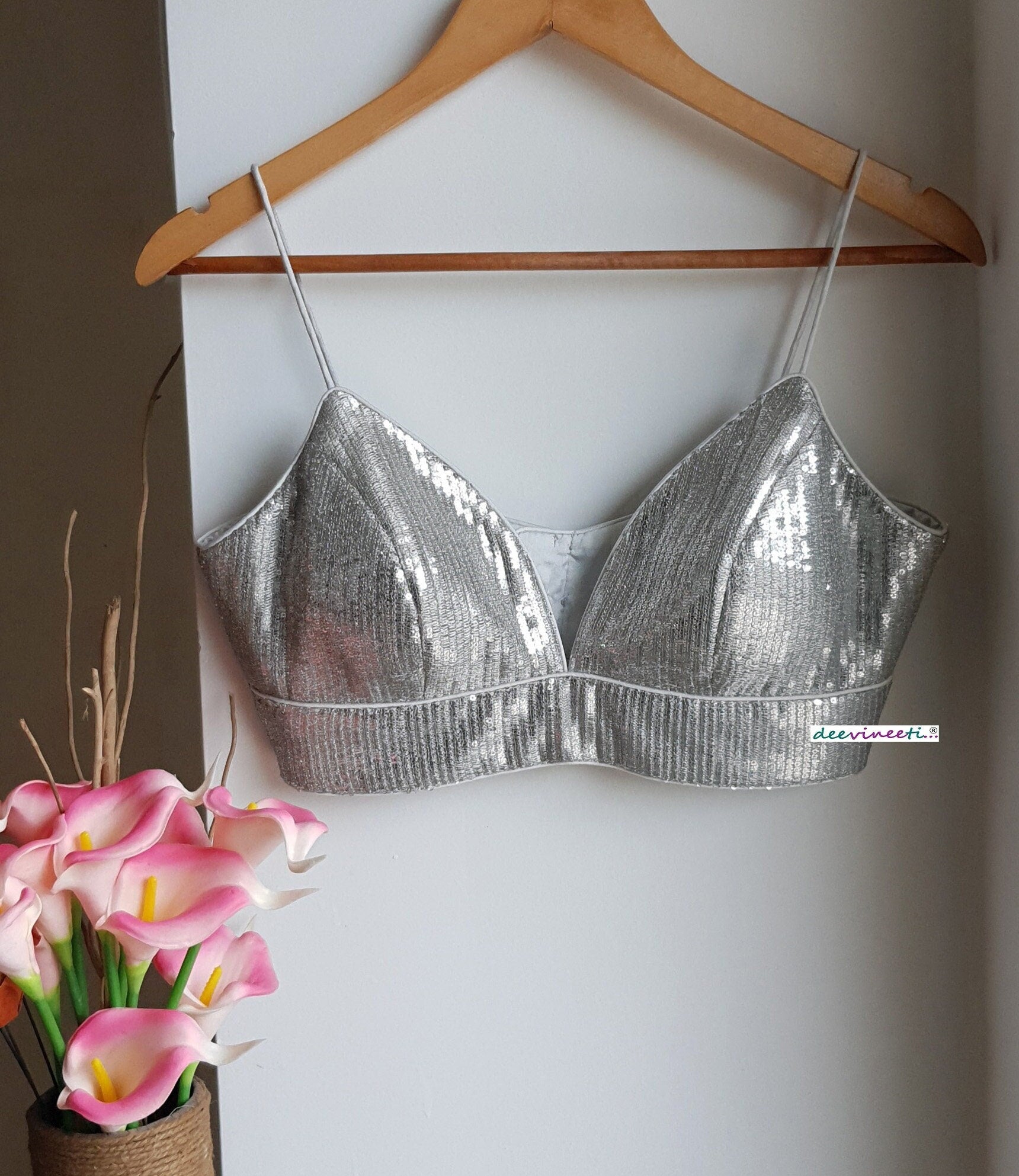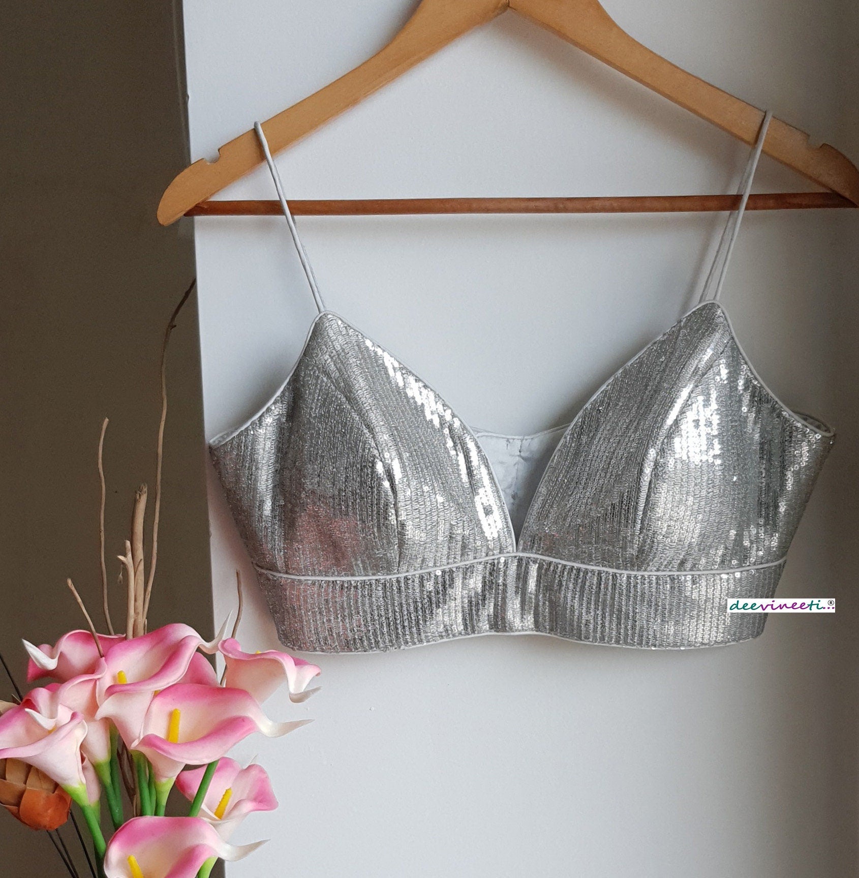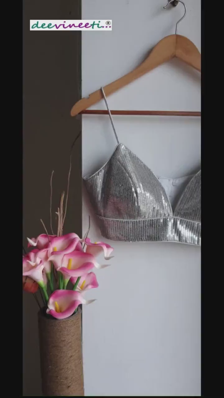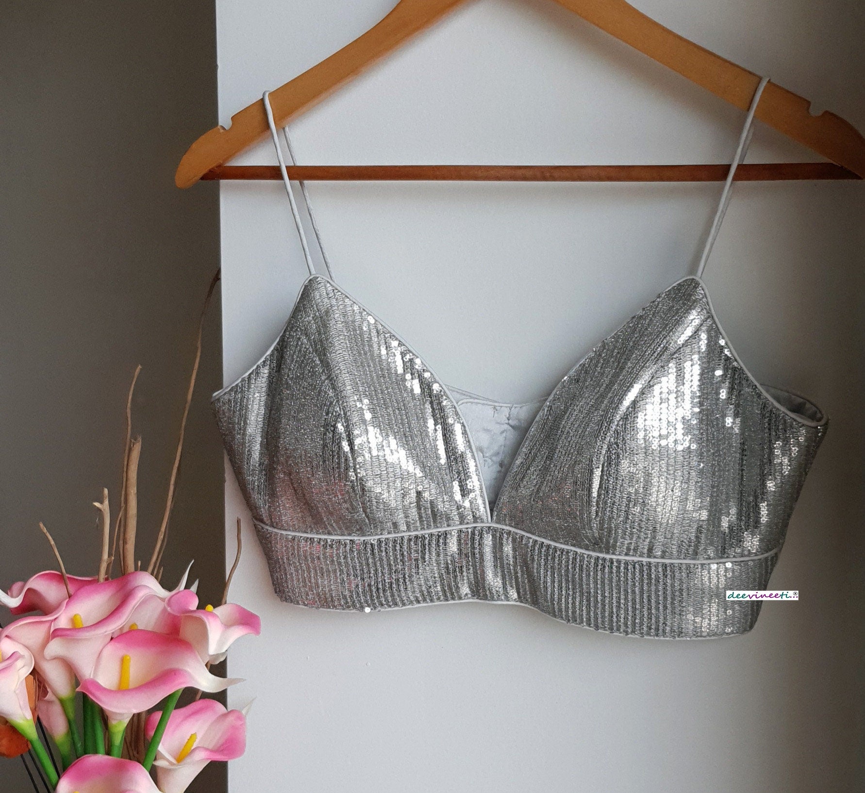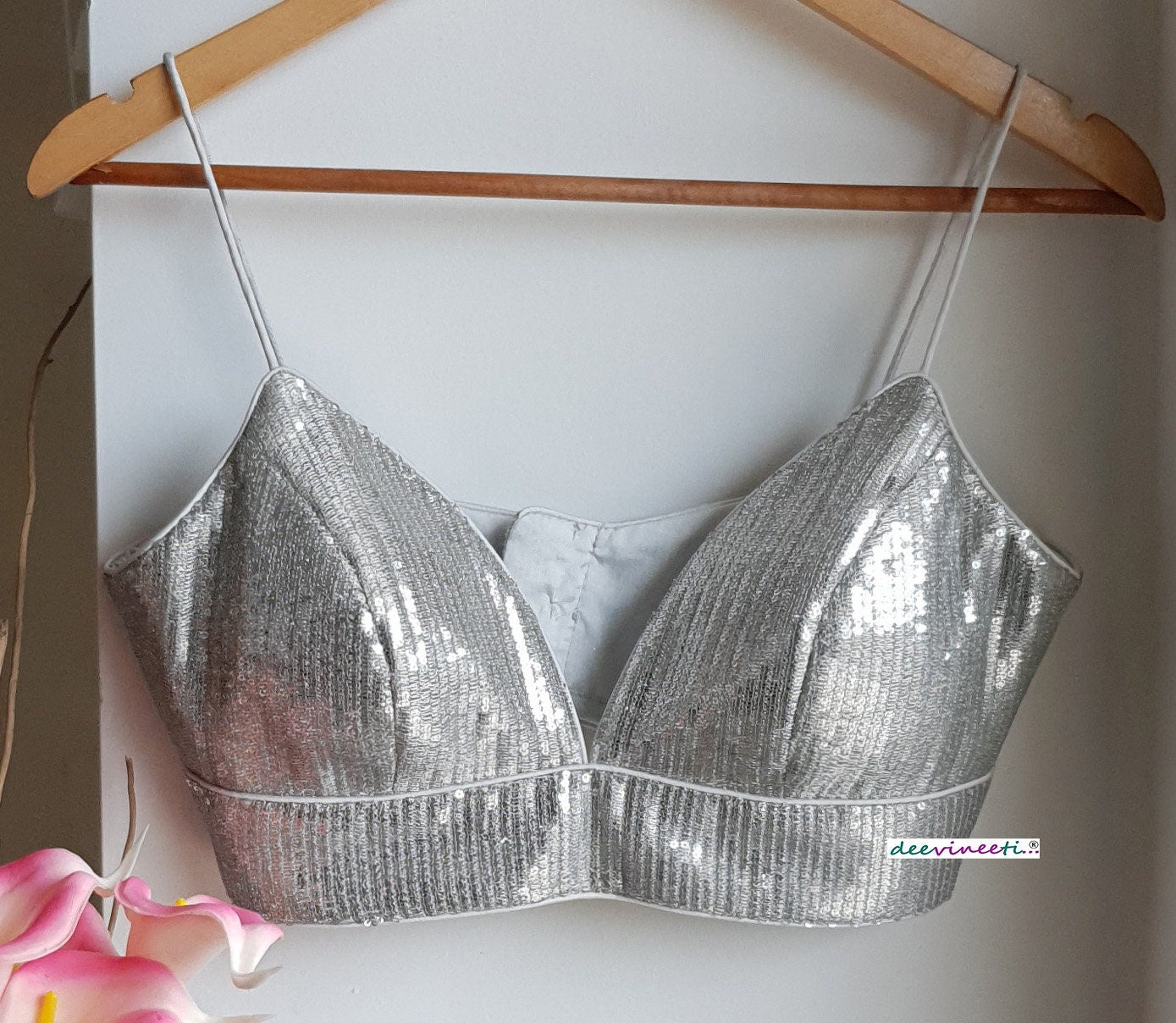 Silver Sequins Embroidered Spaghetti Blouse DVBL_267
